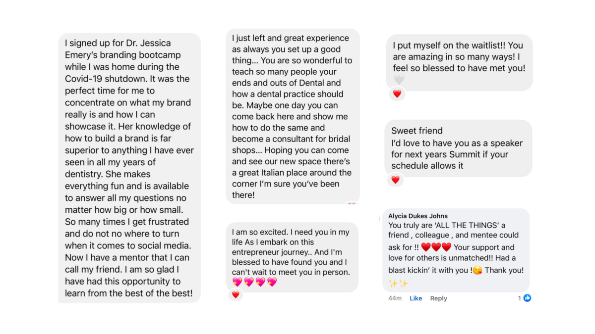 Dr. Jessica has been so instrumental in inspiring me to keep dreaming big. It's been such a pleasure being part of her groups. She has a gift of bringing smart, educated women together, and helping them all believe in what is possible. She is also an action taker, and I appreciate that she pushes you as well. As busy as her schedule is, she is always there cheering you on as you put yourself out there.