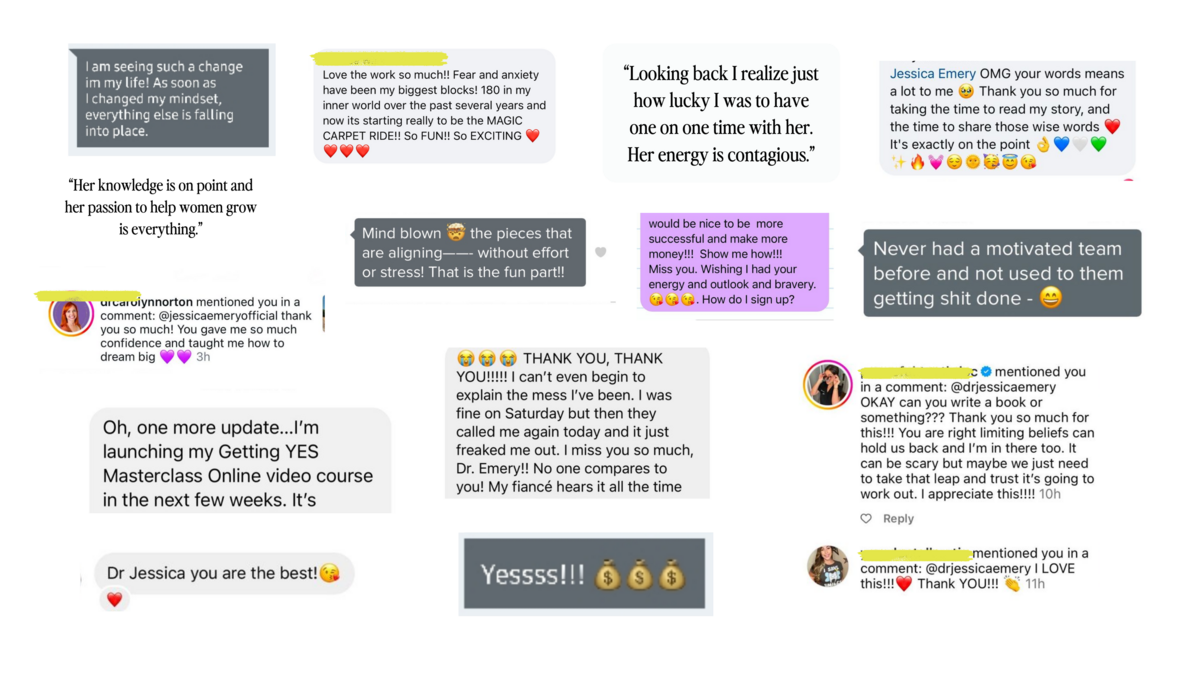 "Jessica, your energy and commitment to making us all better in our lives truly is a blessing . There may be other masterminds out there, but I don’t believe any of them will compare to what I have had the pleasure of being in with you! Thank you from the bottom of my heart for believing in me, encouraging me, and being my friend!"